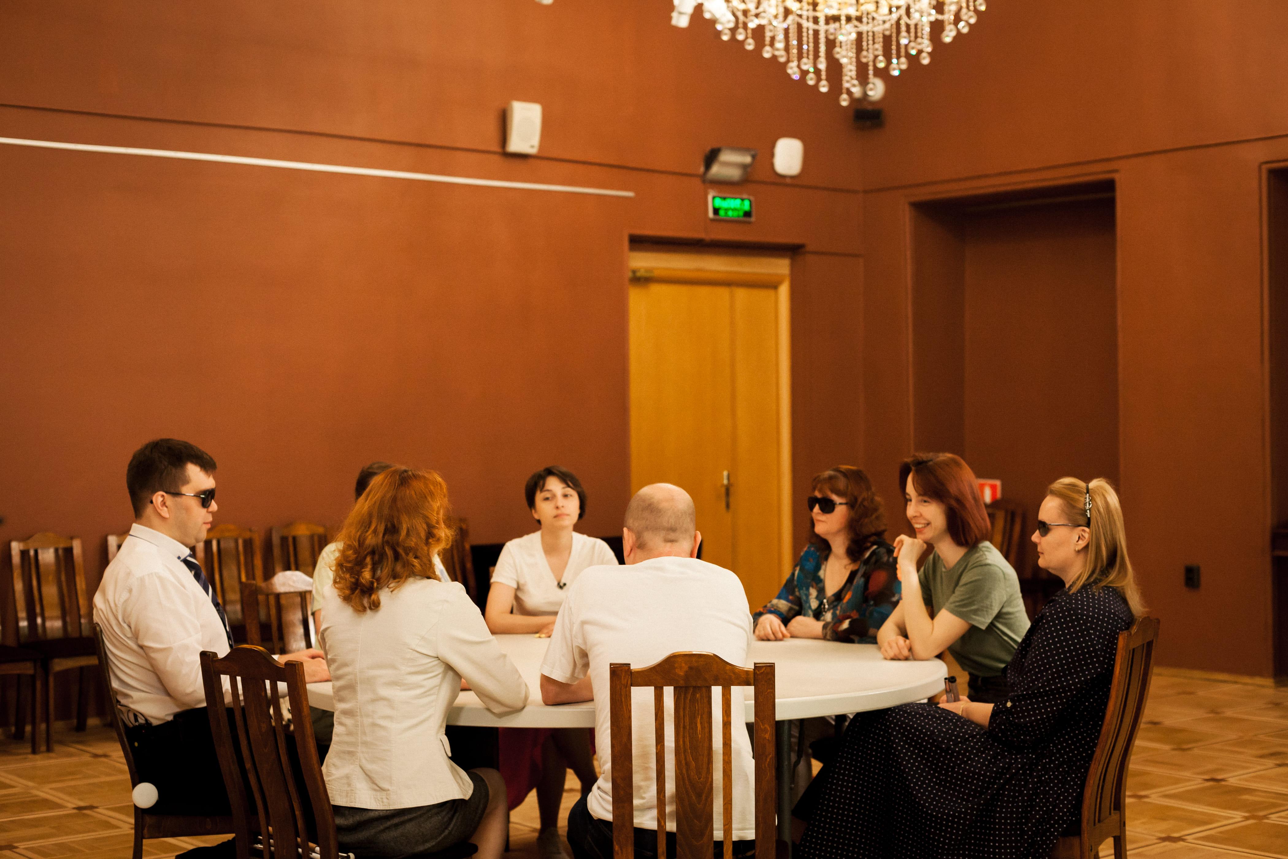 Программа «Действуй без барьеров!» стартовала весной 2021 года. Она направлена на развитие компетенций у людей с инвалидностью по зрению для решения социально-значимых проблем столицы. Организаторы Программы – Московская городская организация Всероссийского общества слепых при поддержке Департамента труда и социальной защиты населения города Москвы. На первом этапе Программы были отобраны участники для школы социального проектирования. Среди критериев отбора участников учитывались личностный опыт взаимодействия людей с инвалидностью по зрению с городской средой, а также их профессиональные и коммуникативные навыки.