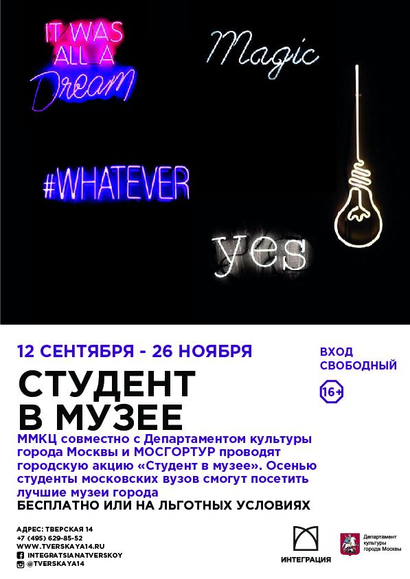 Московские музеи станут бесплатными для студентов этой осенью 12 сентября в 17.00 в Музее AZ (Анатолия Зверева) состоится официальное открытие ежегодной городской акции "Студент в музее", организованной направлением "Культура в городе" Московского многофункционального культурного центра (ММКЦ) совместно с МОСГОРТУР. "Студент в музее" – это возможность для учащихся московских вузов бесплатно посетить ведущие музеи, галереи и арт-площадки столицы по специальному флаеру. В день открытия студенты бесплатно посетят экскурсию по экспозиции Музея AZ "Зверев-GALA", услышат лекцию литературного редактора Ольги Богомоловой и примут участие в розыгрыше призов от партнеров акции "Москва глазами инженера". Участники мероприятия смогут получить первые флаеры и задать вопросы организаторам. Акция состоится в юбилейный пятый раз — за 4 года успешного проведения в ней приняли участие более 60000 студентов из 50 вузов Москвы.